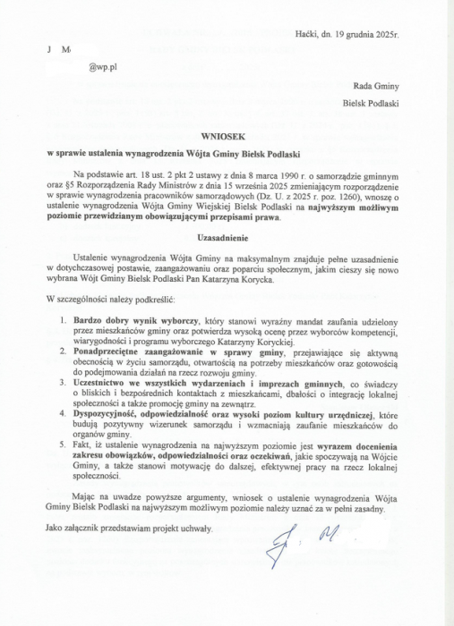 Trudno jest skomentować takie działanie urzędu gminy pod nowym kierownictwem Wójta Gminy Bielsk Podlaski Katarzyny Koryckiej.