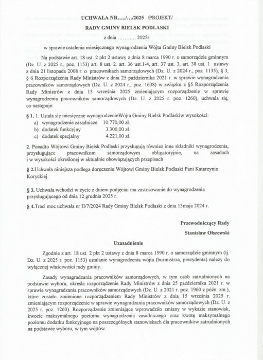 Proszę wejść na stronę urzędu gminy, która zawiera porządek obrad XX Sesji Rady Gminy Bielsk Podlaski XX Sesja w dniu 29 grudnia 2025 r.