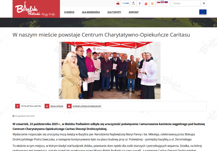 Oczywiście zupełnie przypadkowo na zdjęciu z uroczystości poświęcenia i wmurowania kamienia węgielnego pod budowę Centrum Charytatywno-Opiekuńczego Caritas Diecezji Drohiczyńskiej, w samym środku zgromadzonych znalazł się burmistrz P.Wawulski.