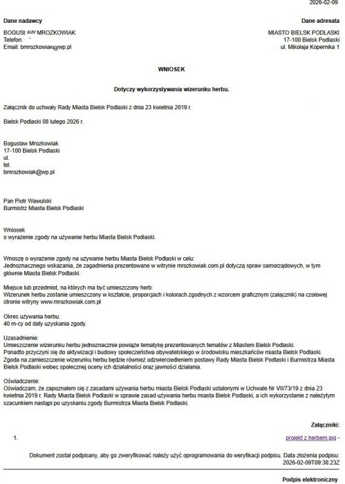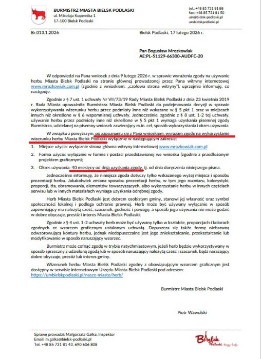 Oczywiście jest to nasza inicjatywa, ale decyzja o tym, że możemy legalnie umieścić herb należała do Burmistrza Miasta Bielsk Podlaski.